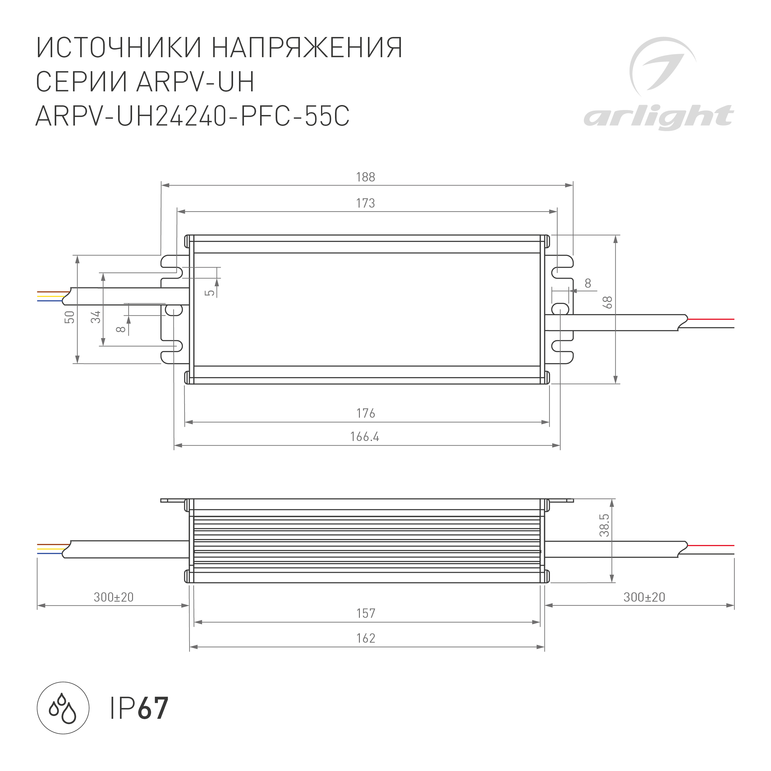 Блок питания ARPV-UH24240-PFC-55C (24V, 10.0A, 240W) (Arlight, IP67 Металл, 5 лет) 025046(1) в Уфе